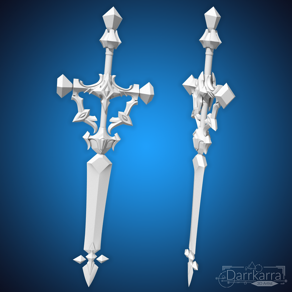 3D .STL model of the Katarina Chosen of the Wolf skin, as seen in the game League of legends. This includes 6 .STL files, some files will need to be printed multiple times. The total length is about 80 cm.